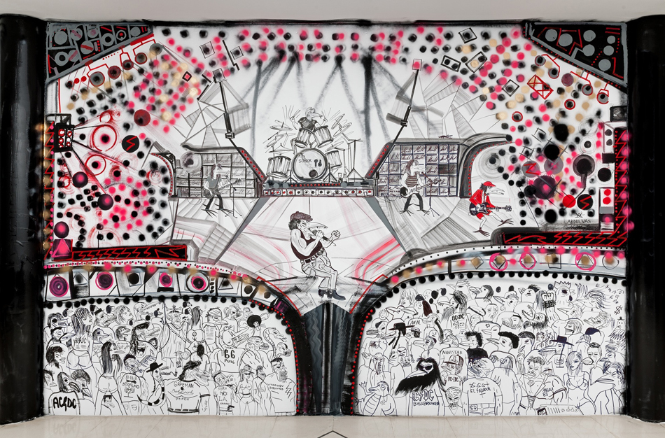 ACDC LIVE 2013 Oil, acrylic, spray, glitter, enamel, rhinestonesenok on board 350 x 1600 cm / 137.7 x 629. 9 inches