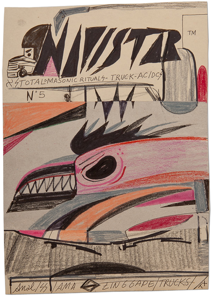 Cucarachon Truck Anal Texas Mack 2008 Oil, senokdust, pencil, ecoline and junglewater on paper, 109, 5 x 75 cm/43.1 x 29.5 inches