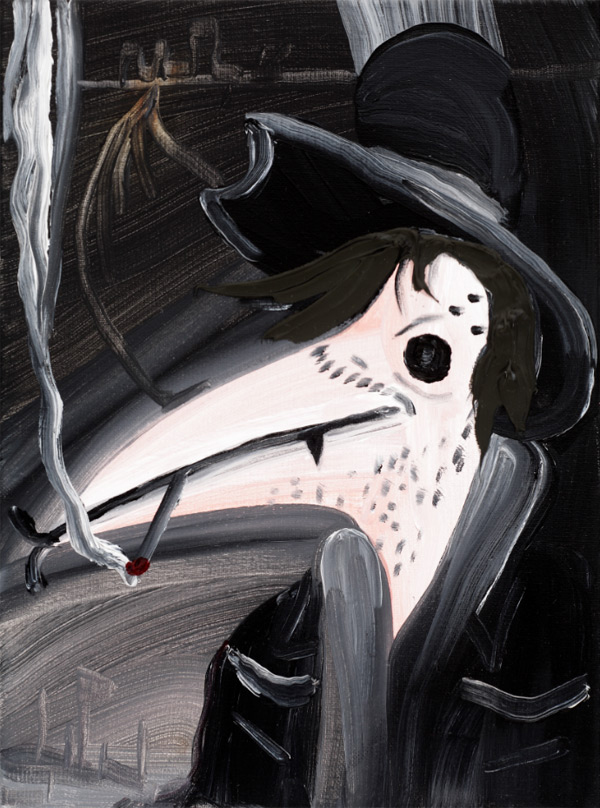 Sir Pussy 2003 Oil, senok, ecoline and junglewater on paper, 130 x 80 cm / 51.1 x 31. 4 inches